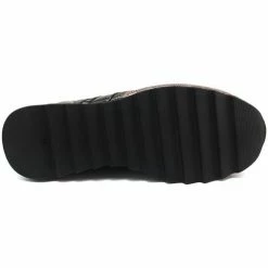 Description : Sneaker pour femmes CETTI 847 en cuir texturé bronze et détails en cuir verni noir. Lacets élastiques. Semelle intérieure rembourrée amovible. Plancher léger bicolore avec bande de roulement dentée antidérapante.