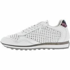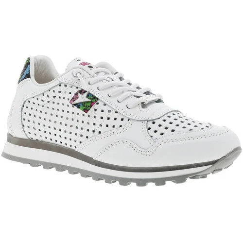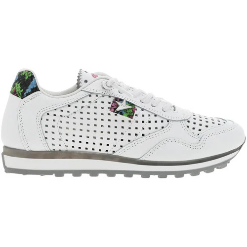 Cuir perforĂ©, Textile, Autres matĂ©riaux- Tige 8 cm- Running Ă empeigne et tige en cuir perforĂ© – Semelle crantĂ© type running et chevillière aspect peau de serpent multicolore- Lacets elastiquĂ©s blancs Ă mĂ©daillon passant argentĂ©