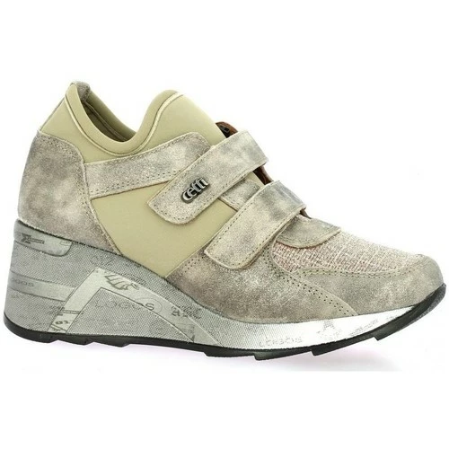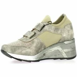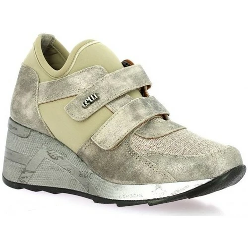 Baskets Cetti en cuir et toile taupe à scratchs.Mélange des matières pour un look actuel branché.Chaussures urbaines compensées disponible en divers coloris. Fabrication: Espagnole. Chaussant : Normal